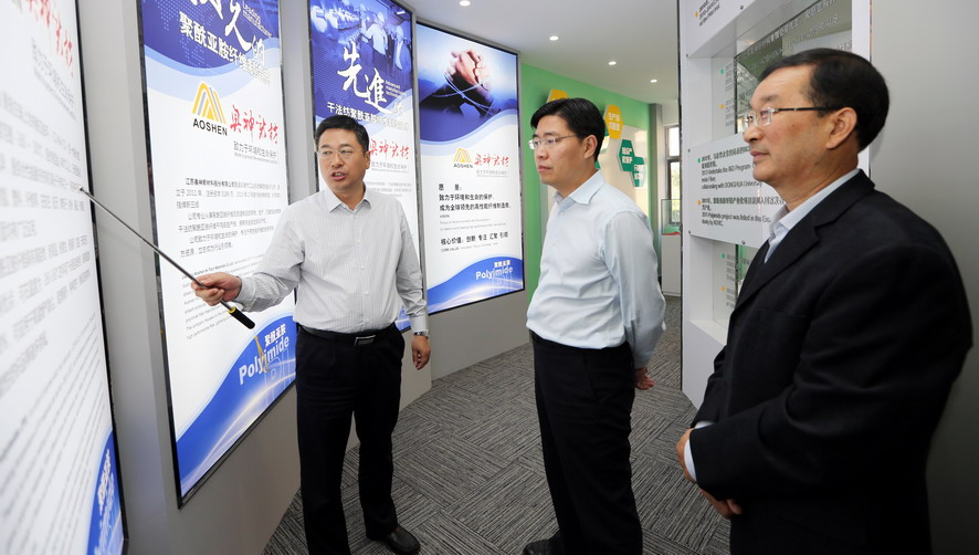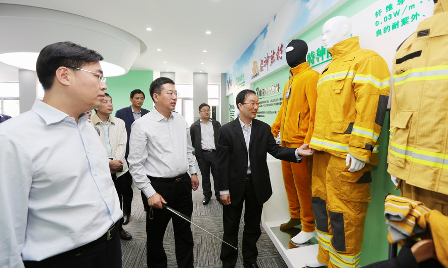 曹衛東一行先后參觀了奧神新材料公司展廳和聚酰亞胺高性能纖維生產車間,并聽取了相關情況匯報,對奧神新材料公司的研發能力和高性能纖維產業發展成效給予了充分肯定。曹衛東指出,奧神新材料公司成立五年來,以創新驅動轉型為動力,致力推進企業技術創新、產品創新和市場創新,取得了令人矚目的成績?!笆濉逼陂g,作為高性能纖維自主研發制造企業、聚酰亞胺纖維干法紡絲生產核心技術的掌握者,奧神新材料公司要進一步突出高、新、優特色,切實踐行創新發展理念,加強自主知識產權保護,在聚酰亞胺纖維研發及生產方面著力突破新技術、提升創新力,推動產業高端化、規模化、集聚化發展,打造國內一流的新材料產業基地,為推動連云港市纖維新材料產業發展做出新的貢獻。