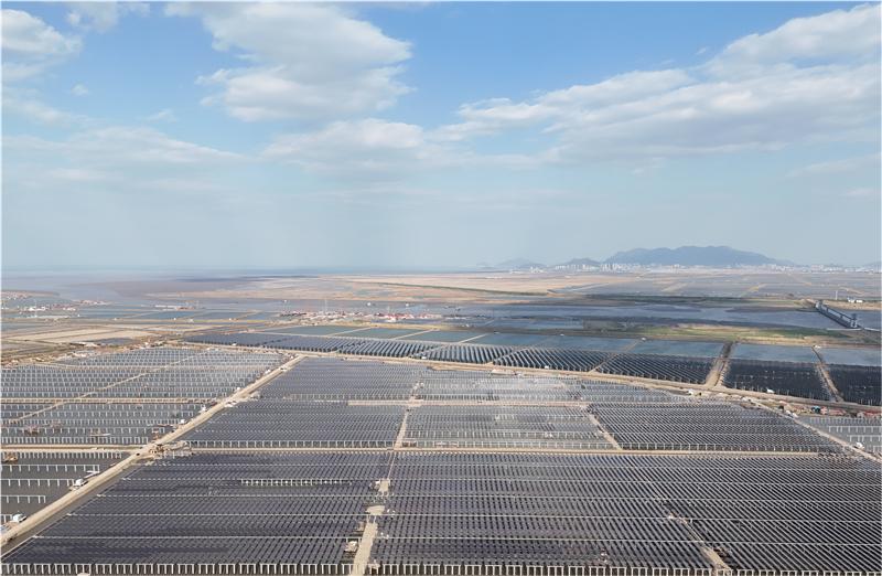 近日,在連云港經濟技術開發區猴嘴街道三峽青口鹽場,近78萬塊光伏板如波浪般起伏,深藍色板面倒映著魚塘的波光,蔚為壯觀。據悉,三峽青口鹽場漁光互補“光伏復合”項目是江蘇省最大的單體陸基漁光互補項目。該項目以“漁光一體”模式實現綜合開發,通過“板上發電、板下養魚”的協同布局,將光伏電站與水產養殖深度融合,構建綠色生態循環體系。目前,項目現場正在進行光伏板及組件安裝工作,預計今年5月31日前全容量并網發電。(王玥 朱迅 李濤 黃阿鳳)(轉自新華網)