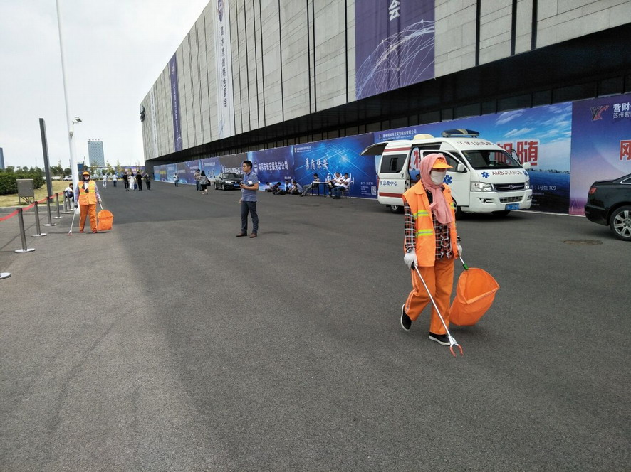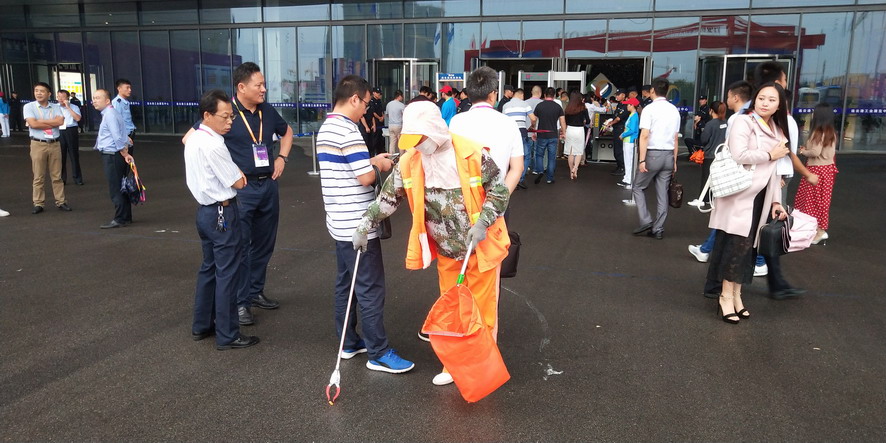 9月14日,連續(xù)忙碌了兩個禮拜的職工們還沒來得及休息,便又投入到“連博會”的準備工作中去。由于本屆“連博會”共有來自27個國家和地區(qū)的420家企業(yè)參展,展覽總面積達3.7萬平方米,各家展商在布置展臺時,各類生活垃圾、裝修垃圾等一度將該公司布設的100多個垃圾桶都塞滿了,在安排好人工清理的同時,該公司還安排垃圾清運車對積存垃圾進行清理清運,組織灑水車對會場及周邊道路進行沖洗,一直到9月18日晚上9點左右才完成準備工作。19日“連博會”開幕當天,負責現(xiàn)場保潔工作的職工們早上6點多就趕到了會場,冒雨在會場周邊開始忙碌,一臺大型清掃車和一臺灑水車也在會場旁隨時待命。到了中午,當展商們在室內(nèi)小憩的時候,室外的職工們?yōu)榱瞬坏⒄`事,站在風口匆匆地扒拉兩口混雜著雨水的盒飯,就又投入到緊張的清理工作中去。僅19號開幕當天,累計清理各類垃圾7噸左右,為“連博會”的正常召開提供了一個干凈、整潔的會場環(huán)境。