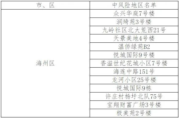根據(jù)國務(wù)院聯(lián)防聯(lián)控機(jī)制有關(guān)規(guī)定,經(jīng)綜合評估研判,市指揮部決定,自發(fā)布之日起,將龍河小區(qū)25號樓、悅城國際9棟、許莊村楊圩北隊(duì)75號、寶翔財(cái)富廣場3號樓、極美苑2號樓調(diào)整為中風(fēng)險(xiǎn)地區(qū)。