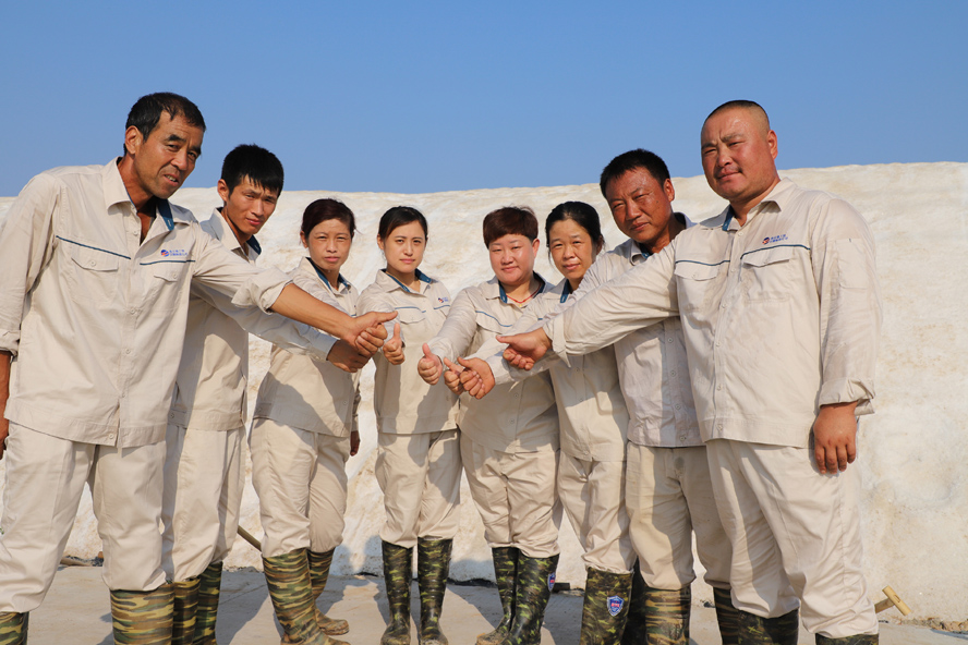 祝星星堅守著軍人的優(yōu)良傳承,發(fā)揮一名共產(chǎn)黨員的忠誠信仰,在工作中奮力拼搏,創(chuàng)新爭優(yōu)。2017年,祝星星所在的八班被集團選為食用原料鹽生產(chǎn)基地,要求灘容灘貌要有高標(biāo)準(zhǔn),要創(chuàng)新研究生產(chǎn)新工藝。如何才能生產(chǎn)出合格鹽?面對全新的課題和生產(chǎn)任務(wù),祝星星沒有打退堂鼓,他帶領(lǐng)班組全體員工,不怕吃苦、敢挑重?fù)?dān),在短短一年的時間里,使海水原料鹽結(jié)晶區(qū)灘地面貌煥然一新,全灘池堰無露土,條條上線,整齊劃一,灘地完好率達(dá)95%以上。為了提升鹽質(zhì),他研究海礦鹵參兌結(jié)晶新工藝,積極推行“傳統(tǒng)海鹽+新式工藝”生產(chǎn)模式,大力推進“216”式單池加鹵法,科學(xué)調(diào)配海礦鹵水比例,完善鈣液除硫工藝,成功生產(chǎn)出合格的新品種鹽1.5萬噸,為打造生產(chǎn)優(yōu)質(zhì)的食用原料鹽生產(chǎn)基地奠定了堅實的基礎(chǔ)。
