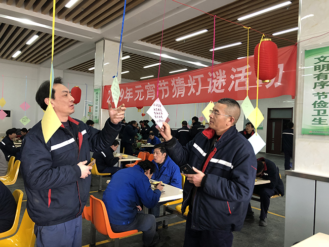 2月19日正月十五元宵節,氨綸公司舉辦的元宵節猜燈謎活動在公司食堂如火如荼的展開了。公司食堂懸掛起近百條五顏六色的謎語紙片和燈籠,廣大全體員工踴躍參加。