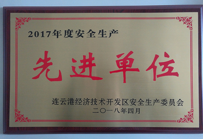 2018年4月28日,開發區2017年度安全生產會議在新海連大廈召開。會上對18家“安全生產先進單位”和26名“安全生產先進個人”進行了表彰。氨綸公司榮獲2017年度開發區“安全生產先進單位”榮譽稱號。 氨綸宣