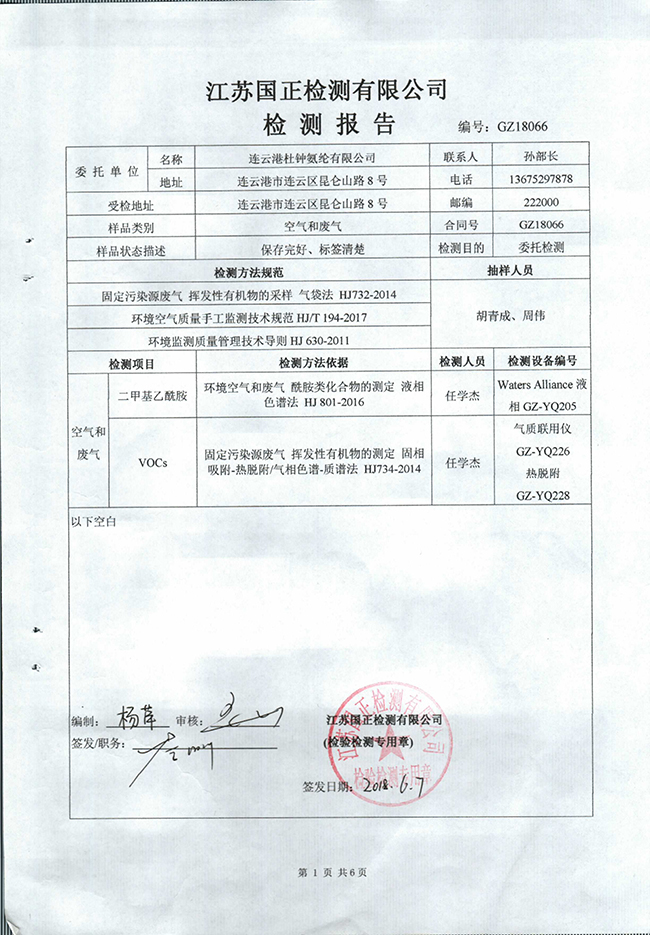 2018年10月29日環(huán)境檢測報(bào)告