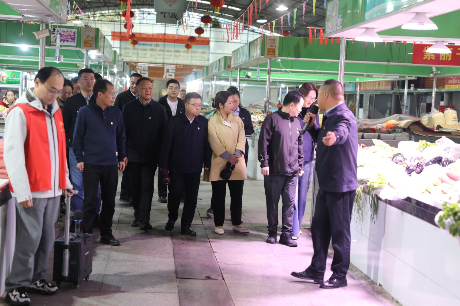 活動中,觀摩團沿著精心設(shè)計的路線,先后走進四大特色點位,每一處都展現(xiàn)出鮮明的黨建特色與發(fā)展活力。在金橋房地產(chǎn)公司黨總支負責(zé)的連云港國際醫(yī)藥創(chuàng)新產(chǎn)業(yè)園,“燈塔先鋒” 培育對象徐震結(jié)合產(chǎn)業(yè)園從規(guī)劃建設(shè)到招商運營的全流程,詳細分享了黨組織如何在產(chǎn)業(yè)布局、服務(wù)企業(yè)、創(chuàng)新發(fā)展中發(fā)揮 “主心骨” 作用,其 “黨建 + 產(chǎn)業(yè)” 的融合模式,讓在場人員深刻體會到黨建引領(lǐng)對產(chǎn)業(yè)高質(zhì)量發(fā)展的強大賦能;隨后,觀摩團來到供電工程分公司黨委負責(zé)的光伏運維現(xiàn)場,培育對象賀通華以光伏板下的 “紅色運維”為主題,講解了黨組織如何帶領(lǐng)團隊攻克技術(shù)難題、保障新能源高效輸出,綠色能源與紅色黨建的碰撞,為大家提供了“雙碳”目標下黨建工作的新思路;在王建勞模工作室,培育對象王建通過展示技術(shù)創(chuàng)新成果、分享師徒傳承故事,生動詮釋了“勞模精神 + 黨建引領(lǐng)”的育人模式,工作室里滿墻的榮譽與實用的創(chuàng)新工具,讓“精益求精、敢為人先”的精神深入人心;最后一站來到了金航公司巨龍農(nóng)貿(mào)市場,培育對象韓永躍圍繞“黨建+民生服務(wù)”,介紹了如何通過黨員示范崗、志愿服務(wù)隊等載體,優(yōu)化市場管理、提升服務(wù)質(zhì)量,切實保障群眾“菜籃子”安全,讓黨建成果看得見、摸得著。