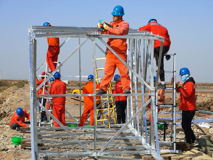 “他們這群小青年能把這36米高的鐵塔組裝起來?”業(yè)主在工地上充滿質(zhì)疑的說。灌云益風(fēng)風(fēng)電35KV集電線路項(xiàng)目是該公司首次自主安裝的工程項(xiàng)目,涉及面廣、任務(wù)重、工期短。這36米的鐵塔,別說這群90后的11名青年突擊隊員,就是所里的老師傅都不曾干過。面對質(zhì)疑,他們沒有理會,而是繼續(xù)埋頭苦干、一往無前。他們在開工前積極響應(yīng)號召,迅速集結(jié)、重裝上陣,認(rèn)真制定施工管理方案,合理安排施工工期,指定項(xiàng)目協(xié)調(diào)人,遇到問題,現(xiàn)場提出、現(xiàn)場協(xié)調(diào)、現(xiàn)場解決,就部分突出問題,重點(diǎn)分析、重點(diǎn)考慮、重點(diǎn)解決,同時通過早會和日報讓大家第一時間掌握到工期進(jìn)度,根據(jù)進(jìn)度合理安排工作,最大程度的提高了工程建設(shè)施工工作效率。當(dāng)天,11名青年突擊隊隊員頂著凜冽的寒風(fēng),在隊長孫迎照的指揮下硬是在短短的幾個小時內(nèi)將B14號鐵塔穩(wěn)穩(wěn)豎起,業(yè)主為此豎起了大拇指。