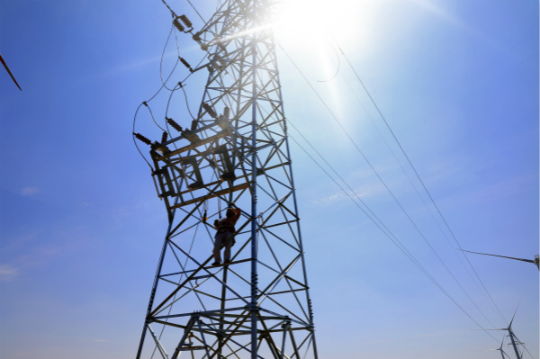 14至18日,灌西供電所轄區。為了保證7月18日順利完成和風風電西線線路工程,施工現場一片熱火朝天的景象,電力施工人員正頭頂烈日,揮汗如雨,正在緊張施工。“施工中一定要注意安全,打好安全帶和保險繩,防止中暑”灌西供電所所長,施工總負責人馬德松囑現場施工人員。烈日中野外施工既拼體力,更拼毅力,施工材料被曬得燙手,鐵塔只能戴手套才能攀爬,施工人員衣服汗透被曬干,曬干再次被汗透,施工環境十分艱苦。為了趕工程進度,施工人員戰高溫、斗酷暑,但沒有一個人叫苦叫累,經過5天苦戰,工程順利結束。