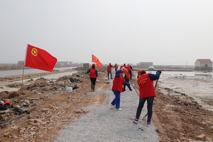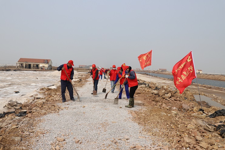 由于年前原鹽銷售工作的持續開展,導致日曬制鹽公司部分班組道路損壞嚴重,不僅影響工人的上下班出行,甚至存在較大的安全隱患。投資公司團委在得知這一情況后,第一時間組織人員到現場進行勘察,并制定維修方案。