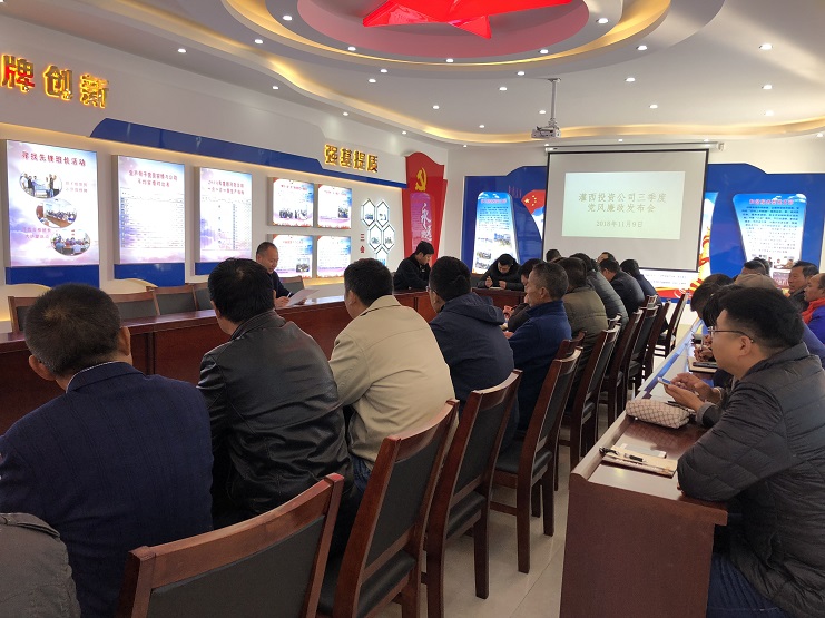 為進(jìn)一步加強(qiáng)公司黨風(fēng)廉政建設(shè),推進(jìn)企務(wù)公開制度的落實(shí),強(qiáng)化職工參與企業(yè)管理與監(jiān)督的力度。近日,灌西投資公司召開三季度黨風(fēng)廉政建設(shè)發(fā)布會(huì),由老機(jī)關(guān)片區(qū)、日曬制鹽兩大片區(qū)基層派駐監(jiān)察室主任分進(jìn)行發(fā)布,各片區(qū)所有管理人員以及部分黨員班組長(zhǎng)參加發(fā)布會(huì)。