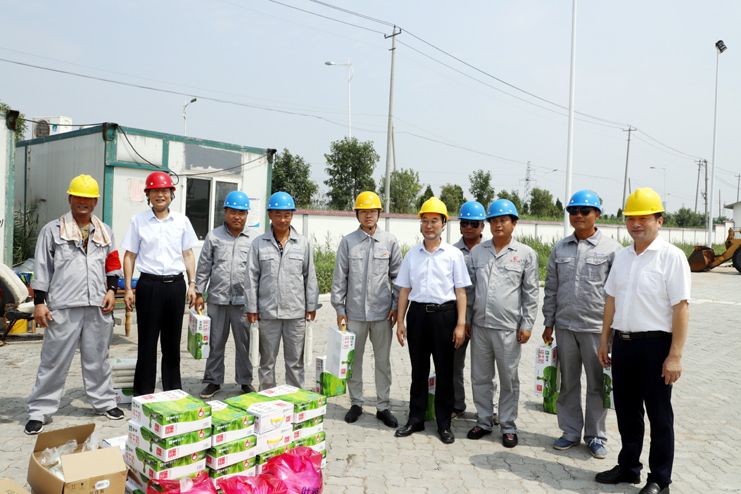 盛夏時(shí)節(jié),驕陽(yáng)似火。連日來(lái)的高溫天氣,考驗(yàn)著堅(jiān)守在一線的廣大干部職工,也牽動(dòng)著工投集團(tuán)領(lǐng)導(dǎo)的心。8月1日上午,集團(tuán)總經(jīng)理胡建明、副總經(jīng)理張其海來(lái)灌西,看望慰問(wèn)高溫下堅(jiān)守崗位的碼頭工人,并送上清涼消暑慰問(wèn)品。