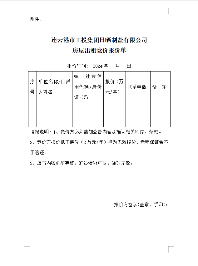 連云港市工投集團日曬制鹽有限公司 房屋對外公開招租公告