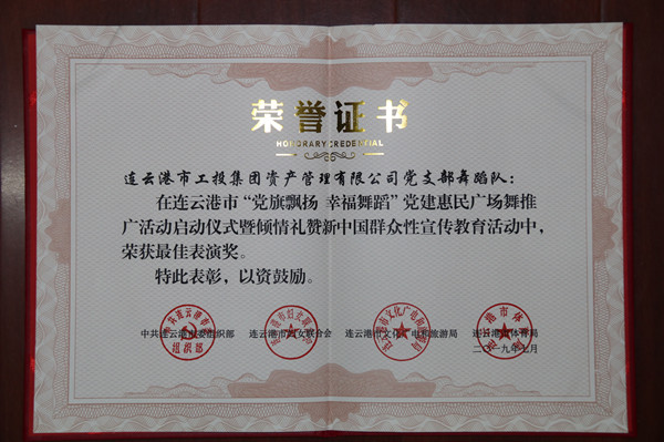 資產(chǎn)管理公司獲連云港市黨建惠民廣場舞活動“最佳表演獎”