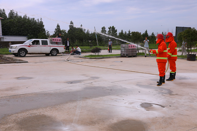 生命無演練,防患于未然?;顒娱_始,安全生產部工作人員一一講述了火災種類、滅火器種類及使用方法,大家輪番上前,親手實踐了滅火器的使用方法。隨后,應急分隊按照預案實地演練汽油機水泵滅火流程。