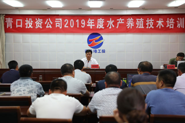 8月28日下午,青口投資公司在四樓會議室舉辦2019年水產養殖技術培訓,來自三洋、黃沙、大新、生態種養管理人員及部分養殖戶代表,共計50余人次參加培訓。副總經理周緒祥、總經理助理張銘楊參加。