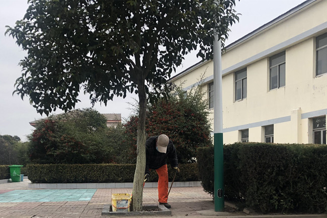 隨著氣溫的逐漸下降,場區(qū)植物開始進(jìn)入冬季生長休眠期,為強化綠化養(yǎng)護(hù)管理,全力確保綠化植物安全越冬,近日,冬季樹木刷白防護(hù)工作全面啟動。服務(wù)中心利用天氣晴好時機對場區(qū)區(qū)域內(nèi)的樹木進(jìn)行涂白防護(hù)。樹干刷一層“涂白劑”是入冬前為樹木進(jìn)行養(yǎng)護(hù)管理的一項重要內(nèi)容,不僅可以減少水分蒸發(fā),還可以增強樹木的防凍能力、防御病蟲害的滋生,具有殺菌的作用,為樹木來年萌發(fā)打基礎(chǔ)。