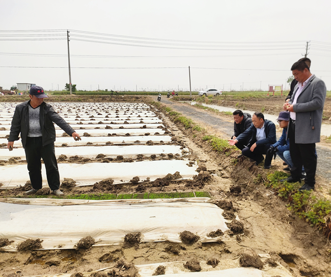 (管理人員檢查苗情情況)