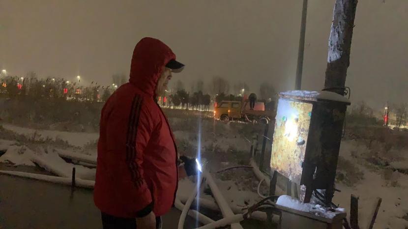 在冰天雪地的先鋒鈣液灘上有一抹亮麗的紅色,他就是鈣液班長程輝,不懼冬日嚴寒,在風(fēng)雪中堅守崗位兩天兩夜,早早的在先鋒灘上等候一輛輛改裝的除雪神器、灑水車;為他們加滿鈣液,奔赴除雪的第一線,他用實際行動傳遞寒冬里的光與熱。