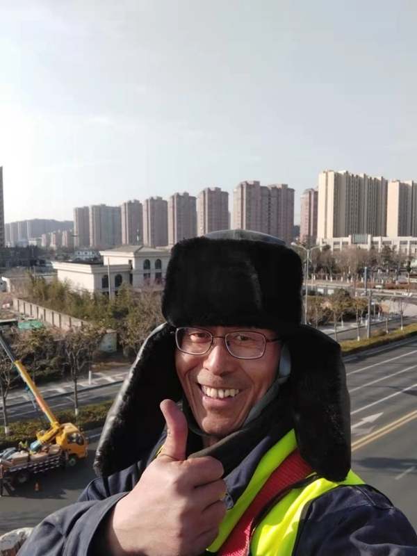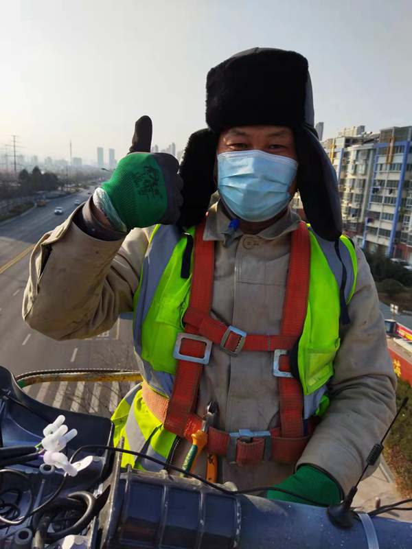 ?該項城市照明提升工程工程量大(約6500套路燈),工期緊。為了趕時間進度,翔立“鐵軍”們由12月27開始施工,日以繼夜、馬不停蹄的連續奮戰在工程一線,沒有一個人掉隊,沒人喊苦叫累,個個都像鉚足了勁的“小牯牛”。肩帶《安全員》紅袖章的工程負責人喬以成騎著電瓶車不時地在海寧大道上來回穿梭著,“王師傅,高空作業車四條支撐臂必須支撐平穩牢固后再提升哦”,“段青春,把前方施工的警示牌擺在車輛后面,還有道路安全錐桶一定要將作業區域圍起來,與后面來車方向保持安全距離。”在市區人流密集的道路上同時有5臺登高作業車分區域高空作業的情況下,他最放心不下,畢竟是高空作業!為了防止高空墜落,登高施工操作人員全部按要求規范佩戴安全帶、系好安全繩、絕緣鞋、防寒安全帽、警示馬甲一應俱全,武裝整齊。為防高空落物,作業車吊籃內使用的工具全部系上“失手繩”,安全施工是必要的前提,有措施,有辦法,畢竟千條萬條,安全才是第一條!