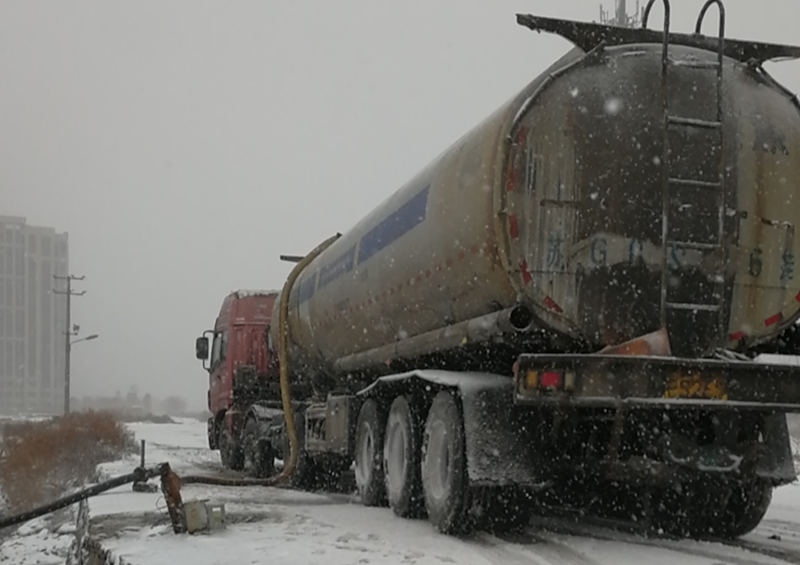 從不因天氣影響而中斷的鈣液銷售工作,風雪中仍在如火如荼的進行著。負責鈣液開票發放人員仔細的檢查并認真注視液位流量計,嚴謹記錄,嚴格遵守“一車一票制度”,滿載鈣液的槽罐車在風雪中緩緩前行,乘載著“瑞雪兆豐年”的希望!