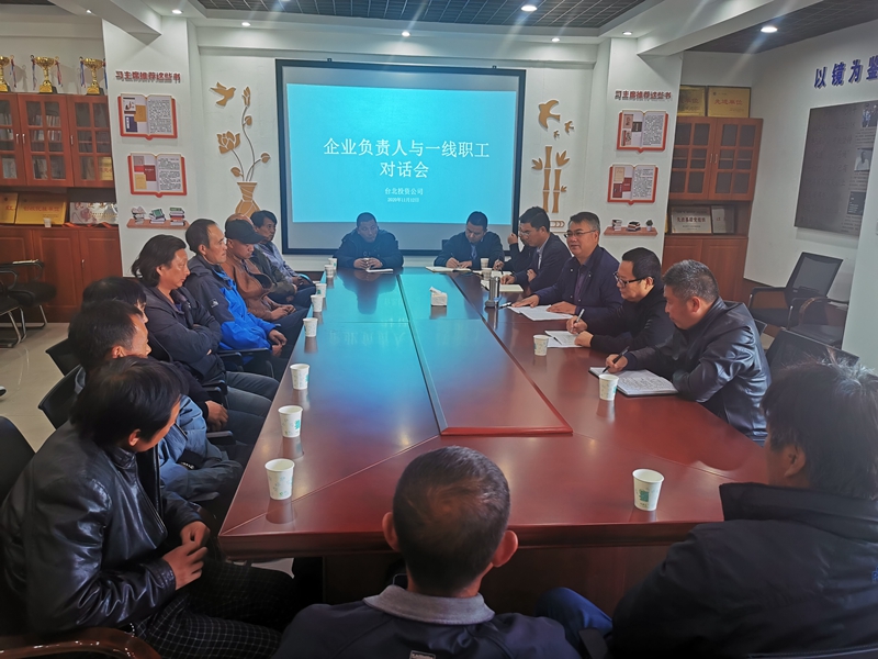 11月12日下午,投資公司在海州灣公司黨建活動室舉辦了2020年企業負責人與一線職工對話交流會。公司黨委書記、董事長、總經理王德志與一線員工代表開展了一場心與心的深入交流。