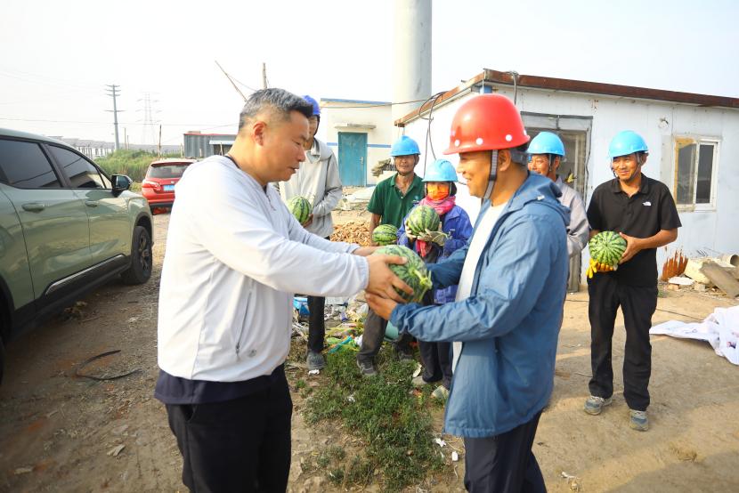 “施工現(xiàn)場(chǎng)送西瓜啦!”隨著夏日高溫持續(xù)攀升,為全力做好高溫天氣下職工防暑降溫工作,切實(shí)保障職工安全健康權(quán)益,自5月20日起,臺(tái)北投資公司工會(huì)精心策劃并開展“夏送清涼”主題活動(dòng)。公司工會(huì)深入工程施工現(xiàn)場(chǎng),將甘甜多汁的西瓜送到堅(jiān)守在高溫崗位的職工手中,為他們送去陣陣清涼,這一暖心舉措收獲職工們紛紛點(diǎn)贊。