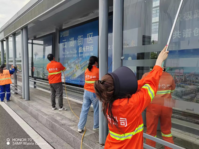 ? ? ? ?集中勞動“有力彰顯”。學習活動結束后,保潔、機關黨支部20多名黨員匯集新區核心區域徐圩大道,南京路等路段,開展黨員義務勞動。活動現場,大家分工明確,相互配合,無懼高溫天氣,上下揮動雙臂,沖洗站臺玻璃和清理廣告標語,經過兩個多小時持續奮戰,徒手清洗站臺20多個,座椅40多個。(楊波)