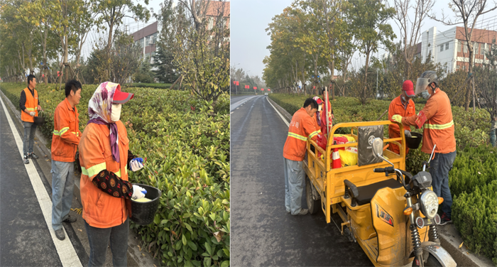 ? ? ? 工作中,班長(zhǎng)李洪利、副班長(zhǎng)李明春,帶領(lǐng)綠化班組30余人,對(duì)云港路、祥和路仁和路,進(jìn)行施肥作業(yè)。“園林衛(wèi)士”手拿施肥工具,2-3人為一小組,采用徒步拋灑方式進(jìn)行作業(yè),縱三路的側(cè)分帶雪松,因長(zhǎng)勢(shì)不良土壤環(huán)境因素,為重點(diǎn)施肥對(duì)象。云港路路線較長(zhǎng),采取分段作業(yè),重點(diǎn)突破。經(jīng)過(guò)一天的忙碌,完成既定路段的施肥任務(wù)。