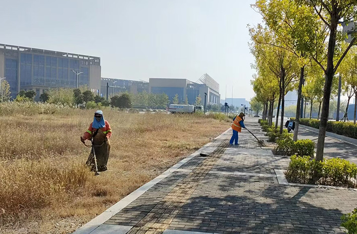 人工清掃不甘落后。針對秋季落葉增多,該分公司徐圩核心區域女子班組近20余名保潔人員,每天拉網式對上海路、南京路、徐圩大道主輔道進行人工清掃,確保新區核心路段環境美麗整潔。日清掃道路平均長達1000余米,打包裝運30余包,轉運各類樹木落葉近20余車。